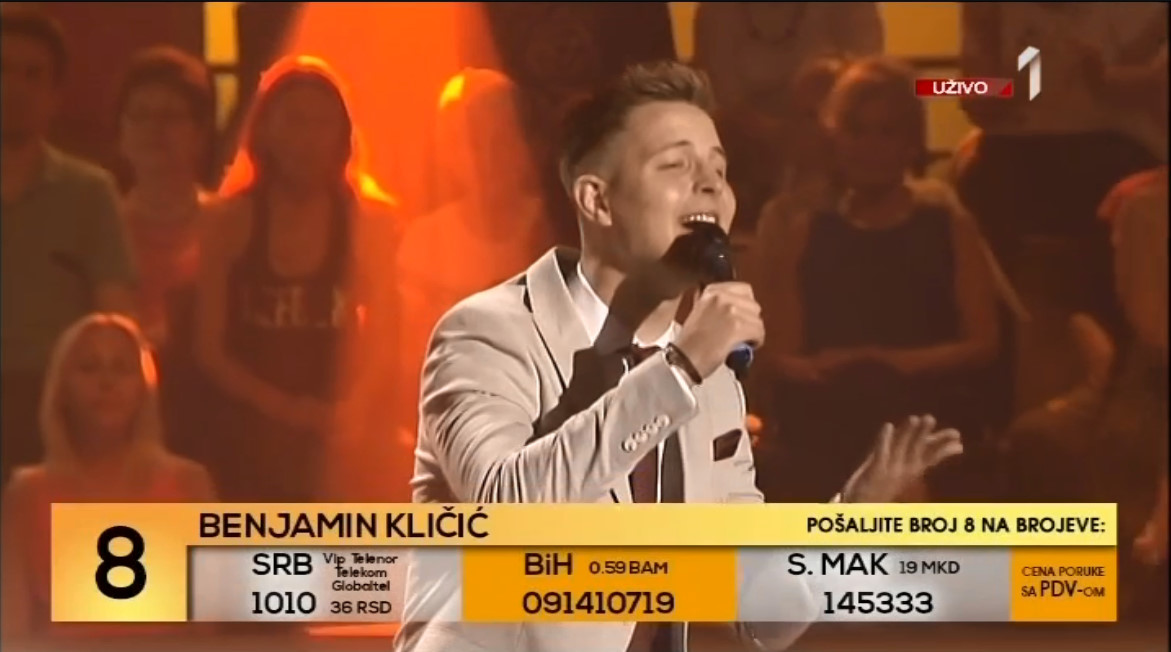 Benjamin Kličić dobio je na samom početku gromoglasan aplauz , a izašao je na binu pjevajući pesmu “Vidi, vidi, ko je doš’o”.