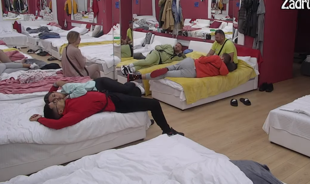 Zadrugari čekaju da počne nastavak emisije “Gledanje snimaka”, a većina njih se nalazi u Beloj kući, kako je napolju loše vreme. Milica Veselinović i Marko Marković su seli na krevet Jelene Golubović, a u jednom trenutku je on legao.
