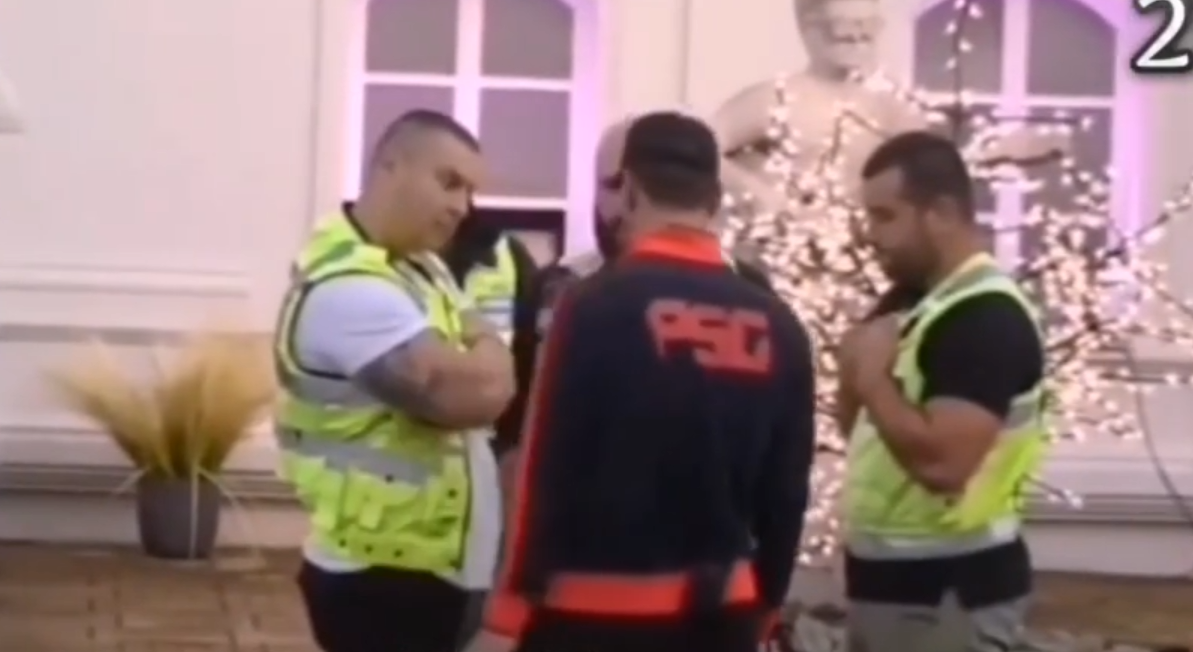 Na snimku se Ćertić koji priča sa obezbeđenjem da ga izvedu jer mu koleno kr.ari.