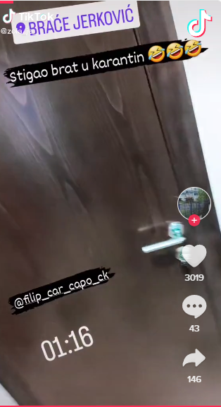 Zola je na svom tiktoku objavio i to da je Filip Car stigao u karantin.