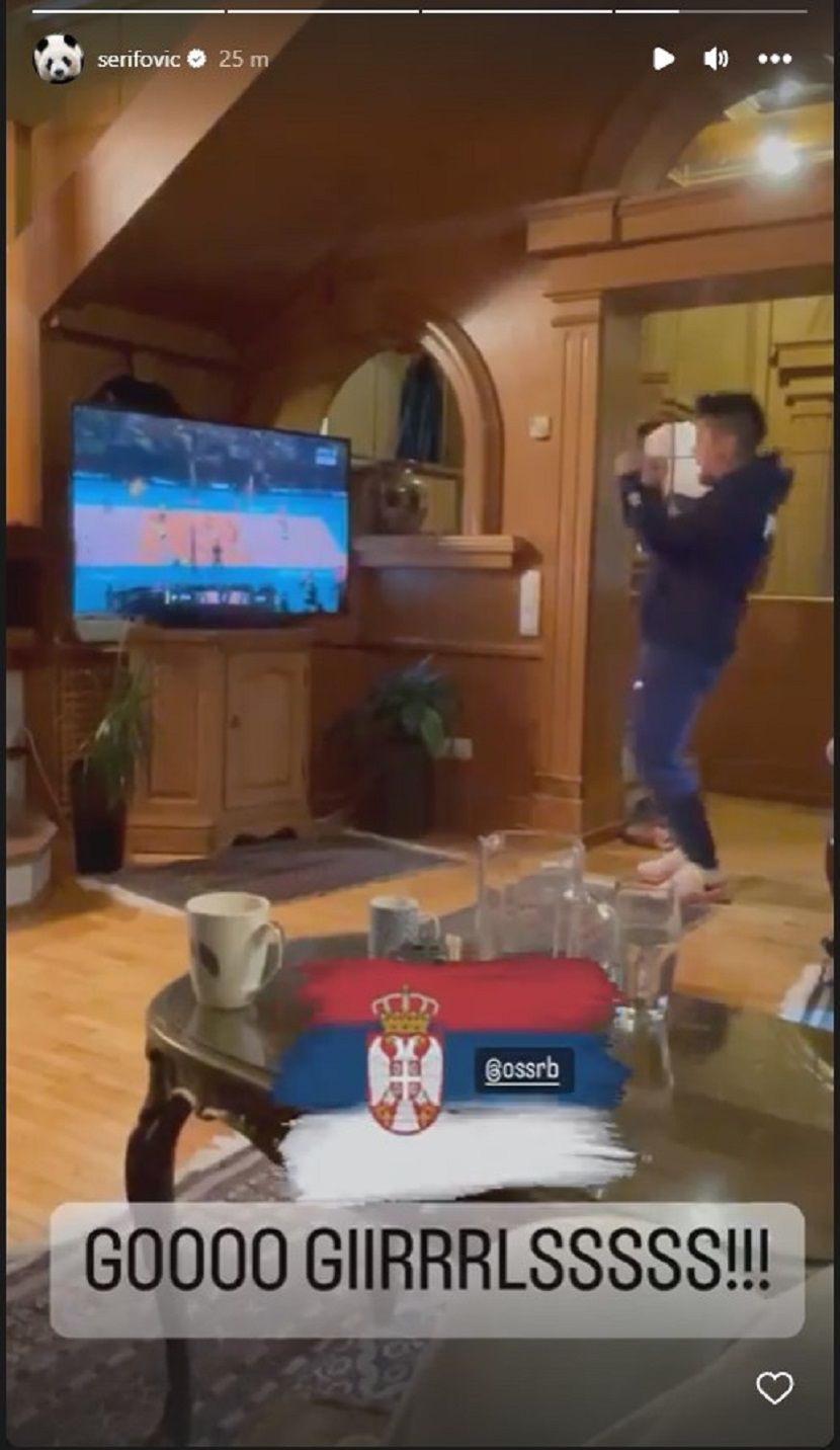 Ona je pomno pratila poslednje minute utakmice, a koliko je napeta, govori to da se približila televizoru i putem ekrana bodrila devojke.