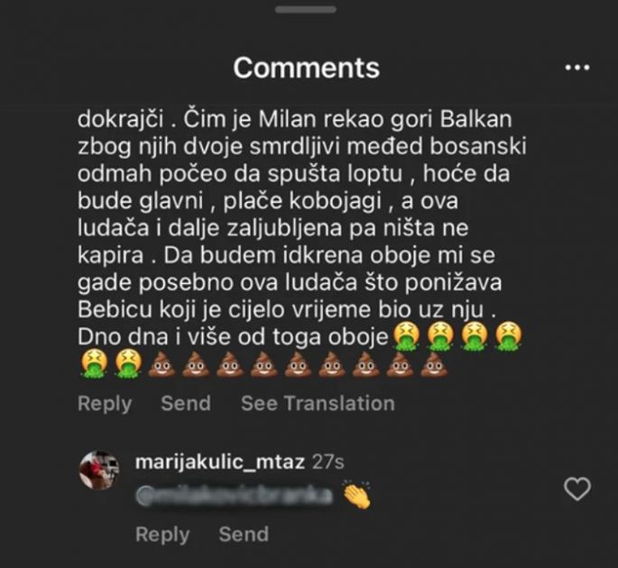 Marija Kulić je ispod ovog komentara ostavila emodži koji označava aplauz, te tako stavila do znanja da se slaže sa mišljenjem ove gledateljke.