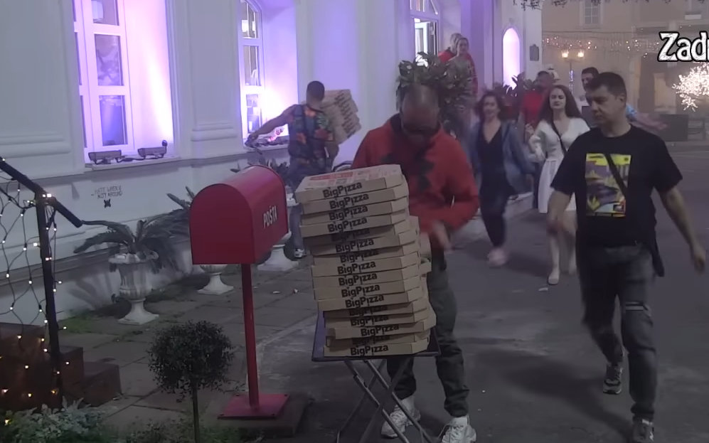 Na vratima su im ostavljene pice, a većina njih je poletela da uzme što više, te su počeli da se gurkaju i otimaju.