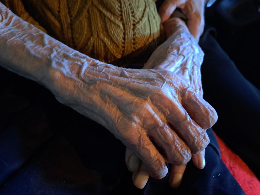 Povukli smo vrata izlepljena kartonom, zaglavila su se na zemljanom podu, a onda smo začuli jauke. U toploj sobi, u krevetu leži baka. Njeni vapaji ne prestaju, a niko ne zna šta želi da kaže. I tako je, pričaju, i danju i noću. Pažnja 24/7, spavanje na prekide, “kao da negujete jednogodišnje dete”. Katkad izgovori neku smislenu reč ili dve. To su fragmenti sećanja i svesti koji odmah nestaju.