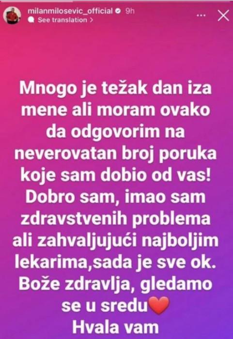 Milan se sada oglasio na svom Instagramu i objasnio zbog čega odsustvuje i kada će se vratiti pred kamere.