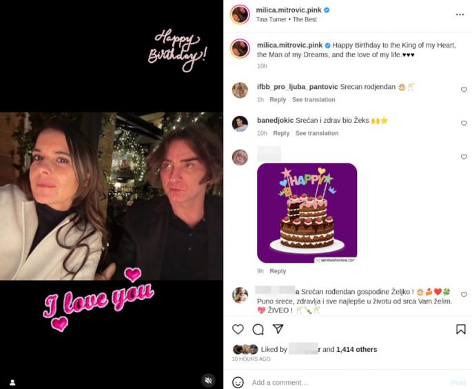 Naime, Željko je proslavio svoj 56. rođendan, a njegova supruga Milica mu je, kao i ranijih godina priredila iznenađenje u vidu torte i čestitala mu rođendan javno, na svom Instagram profilu.