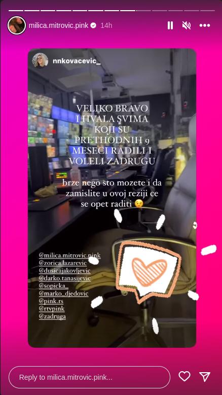 – Veliko bravo i hvala svima koji su prethodnih 9 meseci radili i voleli Zadrugu. Brže nego što možete i da zamislite, u ovoj režiji će se opet raditi – napisala je Milica Mitrović u opisu fotografije koju je podelila i time najavila da nas očekuje novi projekat, kao što smo već napisali – veoma brzo.