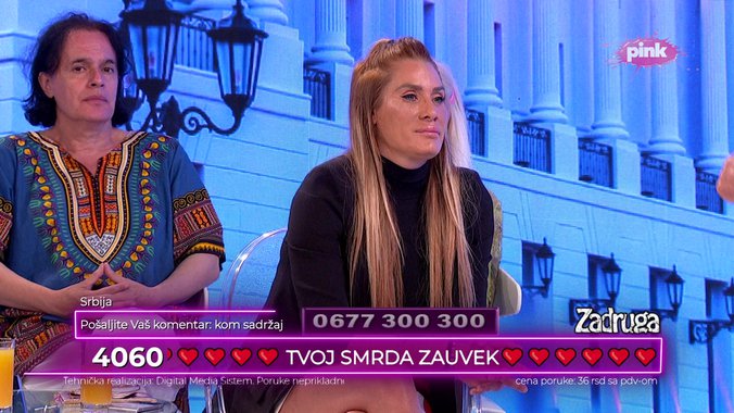 Ne može da sedi na dve stolice, ona sedi na pet stolica. Ti si je blatila jer spaja Aleks i Zvezdana. Pa kad je rekla da se ježe malo. Za nju si govorila sve najgore u spoljnom svetu – rekao je Mića.