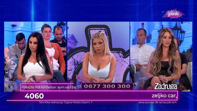 Dobro veče, pozdrav za vaše gošće. Devojke, bravo! Odlične ste i pravi pokazateljka kako treba da se ponaša. Ovo je jedna jako lepa emisija, najviše mi se dopada. Sanji želim sreću s Markom, međutim, mnogo pričaš o nečemu što ne trebe, ali nemoj da diraš moju Aleksandru. Ti si s njim bila jednu noć, a nju je verio – rekla je gledateljka.