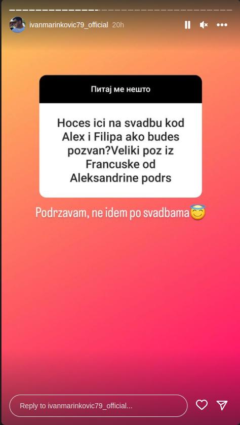 – Hoćeš li ići na svadbu kod Aleks i Filipa ako budeš pozvan? Veliki pozdrav iz Francuske od Aleksandrine podrške – glasilo je kontroverzno pitanje.