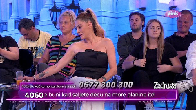 Dobro veče, pozdrav svima. Milorad iz Novog Sada kraj telefona. Ana, podržavam te jer ne došuštaš da ti se deca pominju. Neki su pomešali pozorište sa cirkusom. Jedina njena greška je što se obašjavala Anđeli. Mogla si da sedneš naspram nje i da ne obraćaš pažnju na nju. Ne branim je, nisam bio njen fan, jer mi je Janjuš favorit. Uverio sam se da je njemu dovoljno samo malo da bi izvređao nekog, to mi se nije dopalo. Ana je ponos svoje dece, ja imam petoro. Ponosan sam na njih. Žana je jedna pristojna žena, dopalo mi se njeno učešće u rijalitiju. Mnogo su bile kukacice, koje su želele da se dodvore Zvezdanu, pa su prozivali Anu. Nije mi se dopala podela tkz. Gornjeg, ni Donjeg doma, a kamoli ona Anđela koja sad tuži Slavića – rekao je gledalac.