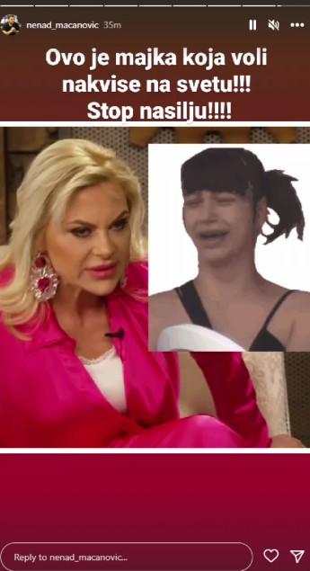 – Ovo je majka, koja voli najviše na svetu! Stop nasilju! – napisao je Bebica.