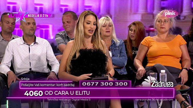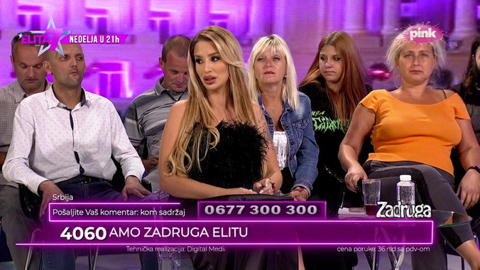 Dobro veče ovde Jelica iz Beograda, pozdrav za sve, ja sam verni pratilac. Pomno sam gledala i umalo se nisam razvela zbog Ane Ćurčić, moj suprug ne gleda Zadrugu ali je bio ljut što ja stalno pratim i zanemarila sam druge obaveze. Revoltirana sam jer je jedan gledalac rekao da Aleksandra nije nikome rasturila brak. Koliko se sećam pričali ste da ste abortirali dete sa oženjenim gazdom kafića u kome ste radili -počela je gledateljka pa dodala: