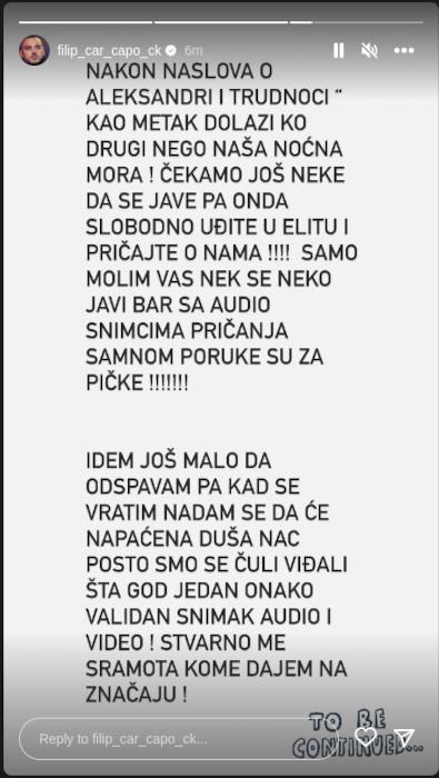 Međutim, kako je Maja Marinković obelodanila prepiske s Filipom, situacija se dodatno zakomplikovala. Ispostavilo se da je radio Aleks iza leđa i sve vreme bio u kontaktu sa Marinkovićevom.