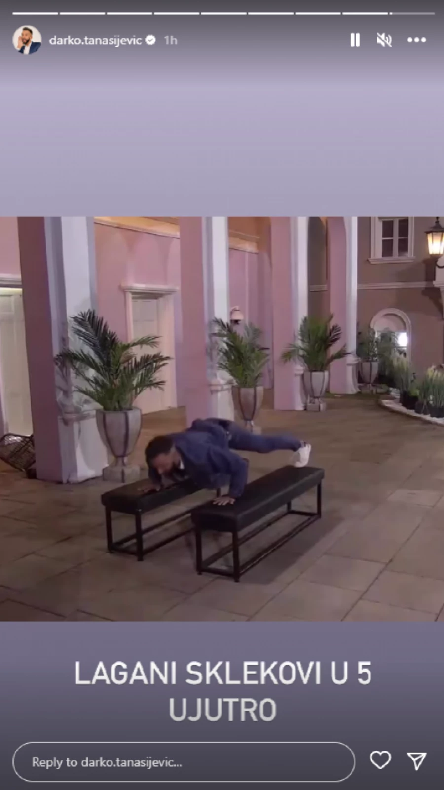 – Lagani sklekovi u pet ujutru – napisao je voditelj.