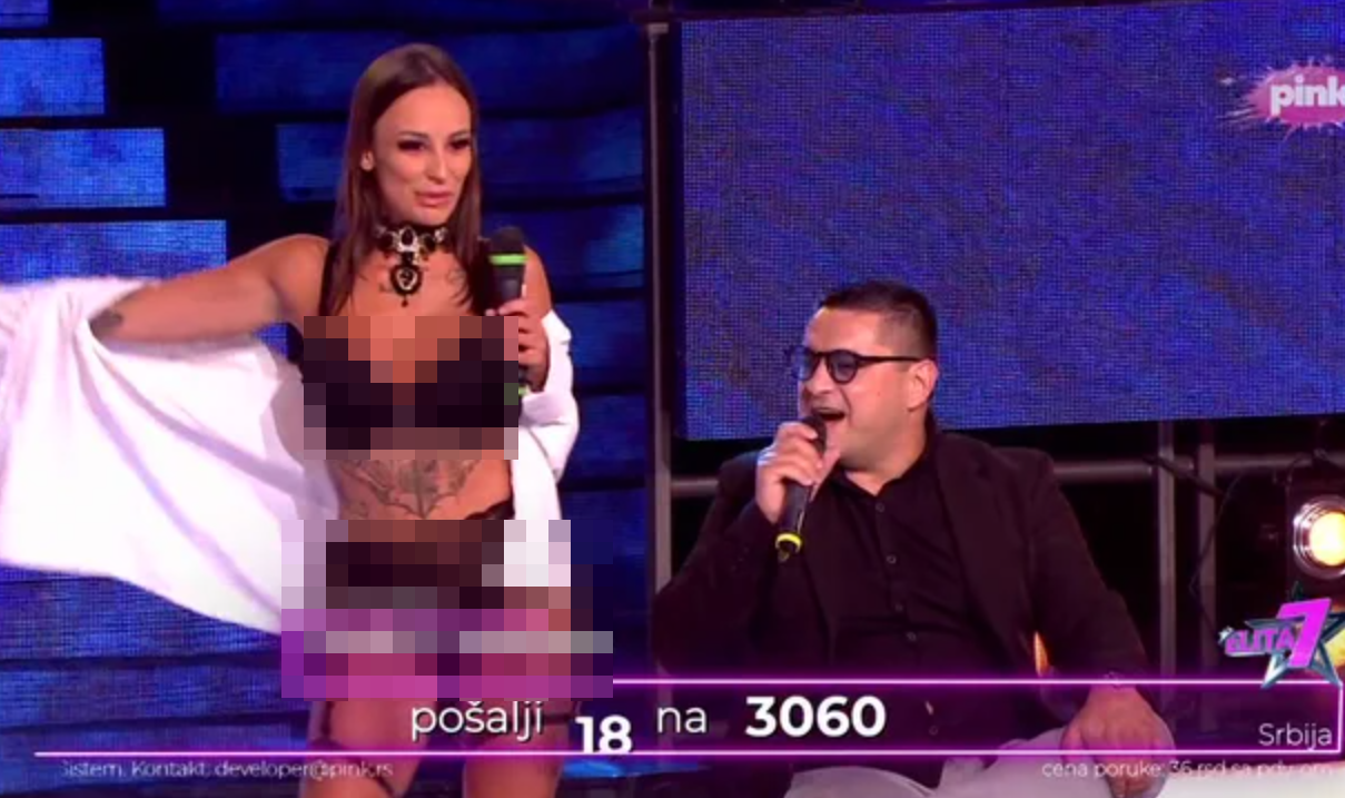Nastup su počeli dok je Bebica sedeo, a Teodora je na sebi imala se*si veš i belu košulju. U jednom momentu je Bebica skinuo košulju Teodori a ona je ostala u izazovnom vešu. Njihov nastup oduševio je žiri koji je igrao sa njima, a Bebica je koristio priliku pa je Teodoru ispipao pocelom telu.