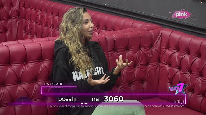 Okrivili su Mensur i Janjuš nešto Miću i rekli da mi on puni glavu i onda je on rekao da se ona digne i kaže. Treba da se postavi pitanje zašto je Jovana baš taj dan rekla to i ja sam je i pitala to. Ona kad je stala ja sam očekivala Darko, kontam šta je sad napravio. Ajde dobro dirao ju je. Rekla sam joj da to nije trebala da kaže, ali je trebala da kaže da sa mnom igra rijaliti i da ona treba da se strpi i ne nađe dečka. Zašto mene nije dirao po polnim organima i gurao m ruku u grudi – rekla je Aneli.