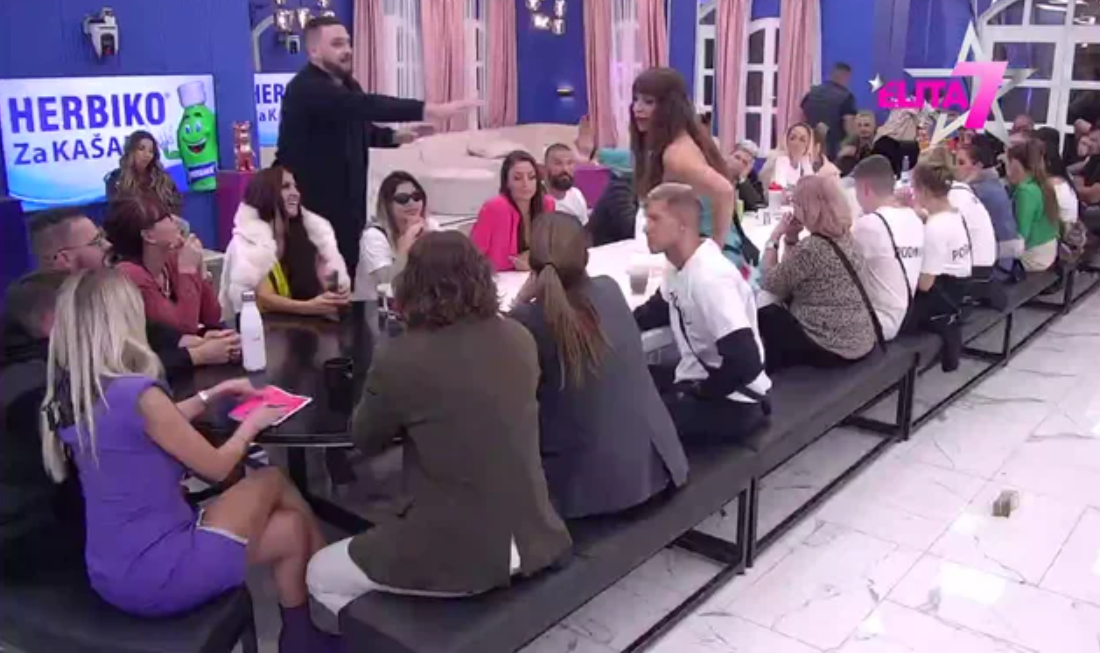 Mnogo ste mi svi lepi. Neka sednu Anita i Mensur, ja nisam takav lik. Ovde su svi negde povezani ali pošto je Predsednik tražio da bude sa Aneli, neka sednu. Ovde su svi parovi pa neka sedne Uroš. Moj odabir za potrčke su Lakić i Miona -rekla je Bojana.