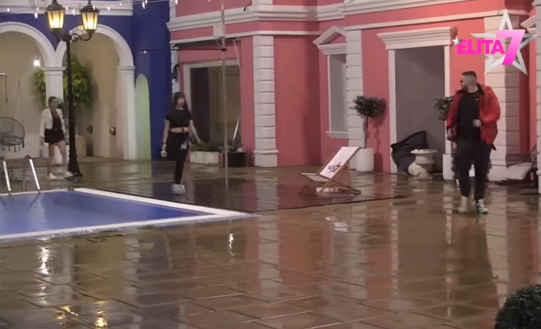 Lazar Čolić Zola i Slađa Bošković nastavili su razgovor ispod trema u dvorištu, te im je tom prilikom prišla Miljana Kulić, koja je polila Slađu.