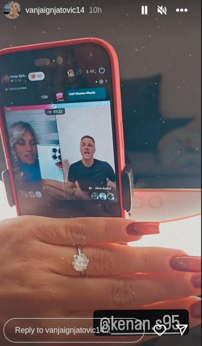 Naime, dok je Elvin pevao pesmu “Kada ljubav zakasni” u lajvu, Vanja je sa osmehom na licu pokazala prsten koji nosi na ruci.