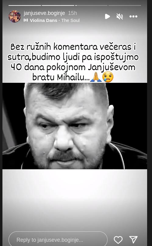– Bez ružnih komentara večeras i sutra, budimo ljudi pa ispoštujmo 40 dana pokojnom Janjuševom bratu, Mihajlu… – glasila je poruka.