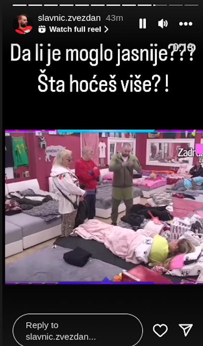 Nije kristalno jasno na šta Slavnić insinuira ovim snimkom iz “Zadruge”, te nam ostaje da ispratimo njegov Instagram nalog, isto kao i Anin. Zbog eventualnog odgovora, pošto Ana ne ostaje često nedorečena.