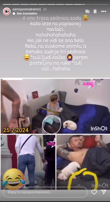 – A ono treća sedmica kako leže na popi*anoj navlaci. Ma jok, ne vidi se ona bela fleka na svakom snimku iz rehaba zadnje tri nedelje – glasio je komentar na Instagramu.