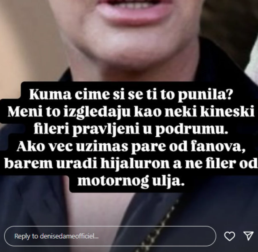 – Ovu sezonu ulazim gola bez filtera, dosta sam štitila Takije Cakije, Đukiće, Mukiće, dve godine sam samo primala i ćutala, a sad imam više nego dovoljno. Nemojte se kačiti na starije igrače, vi nebitnjakovići – rekla je Deniz za naš portal na licu mesta, pa otkrila da je imala zahvat “Barbi ribica”, kojem se nedavno podvrgla, te da je ponovo izgleda kao devica.