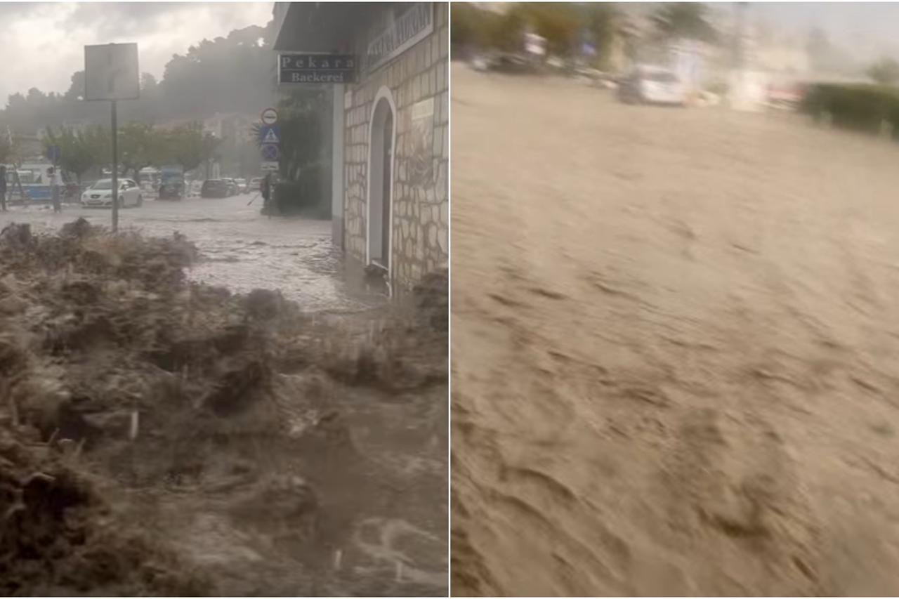 Nakon 15 sati Podgoru je pogodilo snažno nevrijeme u kojem je u samo nešto više od sat vremena palo čak 140 litara kiše po metru kvadratnom. Kiša i dalje ne prestaje padati, javlja Dalmacija Danas, a sve raspoložive vatrogasne snage su na terenu. Bujice su preplavile ulice, dvorišta, podrume i šetnice.