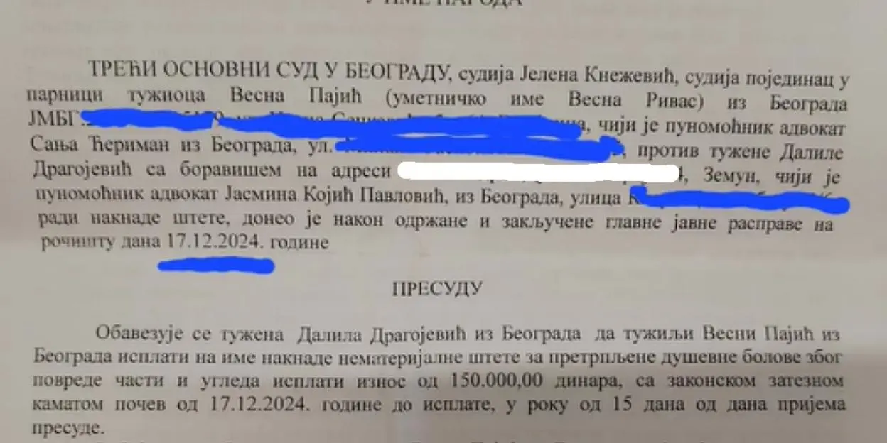 – E moja Dalila, u laži su kratke noge. Ti i tvoji advokati ste se žalili, prolongirali vreme da bi ti pobegla u Ameriku i misliš kao u rijalitiju, kako ovako uz osmeh odvališ notornu laž, tako će i dugovi nestati tvojim begom. Ne, neće, čekaju te ovde u Srbiji, gde ćeš doći kad tad. Možda te Tramp sada potera, pošto si i ti tamo ilegalno. A koliko god ste muvali, mućkali, odlagali, neke stavri poništavali, presudom Višeg suda od 17. decembra 2012. godine, teče ti kamata na oba iznosa i tu više nema vraćanja, obaranja i slanja još na neku višu stancu – napisala je Vesna na svom Instagram profil, pa dodala: