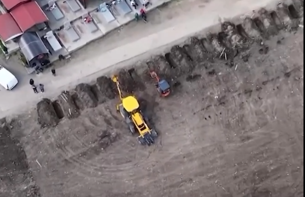 Reuters je objavio video snimak bagera koji su već na terenu i kopaju grobove.