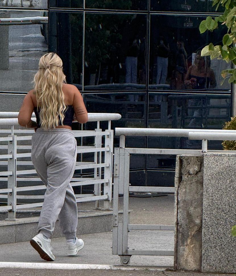 Ona je uslikana ispred trafike preko puta Pinkove zgrade na Dedinju, a zatim i kako ulazi u nju.