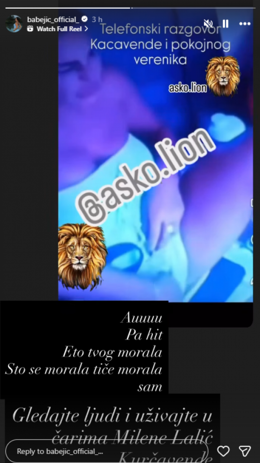 Sada se na Instagrau pojavio šokantan snimak Kačavende, na kom se dodiruje po intimnoj regiji, dok uz opis stoji tvrdnja da je tako izgledao razgvoro s Anđelom Rankovićem. Fotografije možete pogledati u nastavku u okviru galerije: