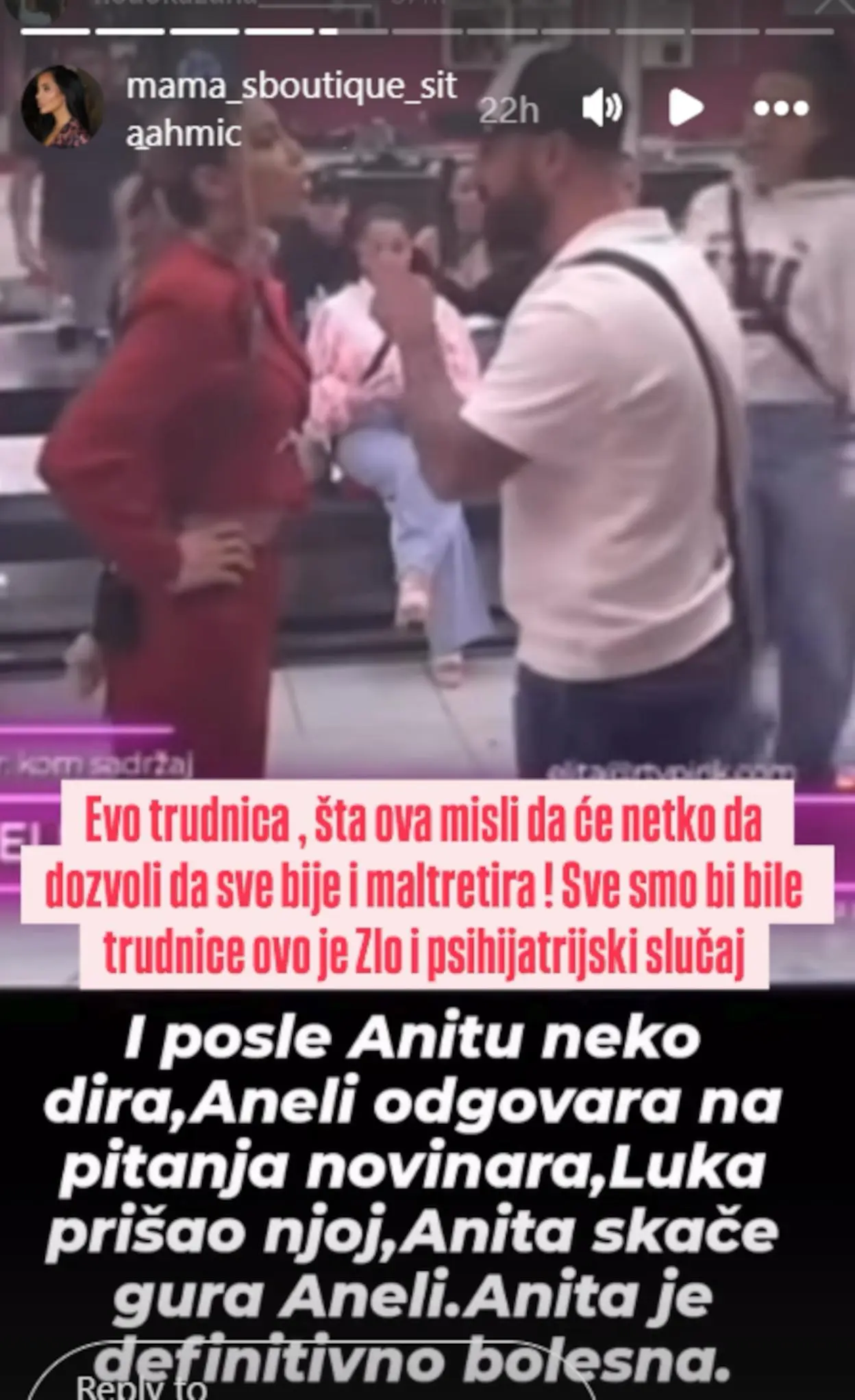 “Evo trudnica. Šta ova misli da će neko da dozvoli da sve bije i maltretira? Sve smo mi bile trudnice. Ovo je zlo i psihijatrijski slučaj”, pisalo je uz video, a Sita je dodala: