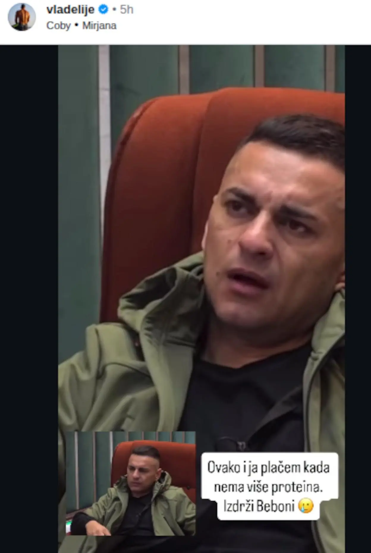Dodatno je „začinio“ objavu pesmom „Mirjana“ od Cobija, uz natpis „100 kila gorila“, što je izazvalo lavinu reakcija i komentara na društvenim mrežama.