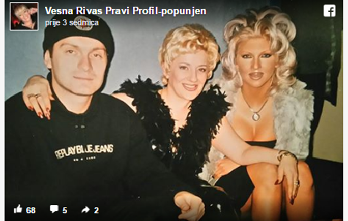 Ipak, u moru Vesninih fotki, pojavila se i jedna gdje je Rivasova pozirala sa Dačom iz grupe “Dak“ i pjevačicom Jelenom Karleušom. Ova slika je privukla dosta pažnje jer je Vesna od Jelena starija čitavih 13 godina a izgleda u najmanju ruku kao da su vršnjakinje (ako ne i kojju godinu mlađe od Jelene).