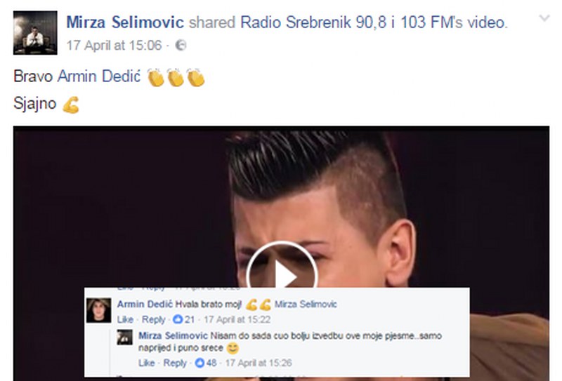 S obzirom da je pjevao Mirzinu pjesmu i sam Mirza se oglasio , koji nije krio oduševljenje zbog Arminove sjajne interpretacije njegove pjesme.