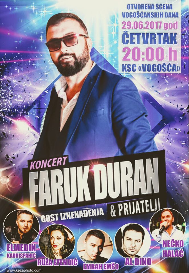 Faruk Duran prošlogodišnji finalista Zvezda Granda u četvrtak će u okviru “Otvorene scene vogošćanskih dana” održati koncert zajedno sa svojim prijateljima koji će biti specijalni gosti.