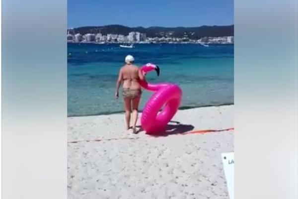 Baka je ponela popularnog gumenog flamingosa na plažu, a onda priredila pravi šou, koji rado gleda ceo svet.