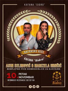 Ovaj petak najbolji provod u Kafani Sidro na Jezeru Modrac. To i ne treba čuditi s obzirom da goste zabavlja ucesnici emisije Zvezde granda Marizela Maky Hrncic i Asim Selimovic !