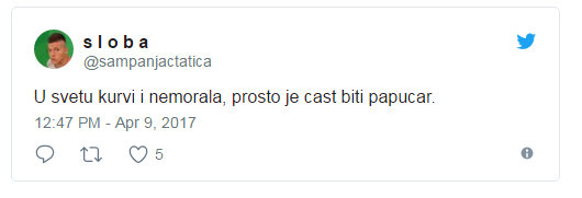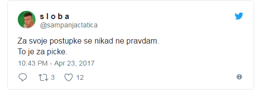 Ovo je napisao Sloba. Čovek koji se svaki dan pravda svojoj ženi što ju je prevario u rijalitiju.