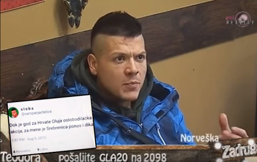 Pinkova zvezda Sloba Radanović je uspio da “ostvari” svoj san – da postane poznat! Samo što je sve otišlo u drugom smijeru, pa trenutni učesnik Zadruge ne silazi s naslovnih strana i portala, ali ne zbog talenta, već zbog toga što je suprugu Kiju prevario sa Lunom Đogani – pred milionima ljudi. O Slobi Radanoviću se svaki dan pojavi neki novi detalj iz njegovog života, a ovoga puta je objelodanjen skandalozni status kojim veliča masovno ubijanje ljudi u Srebrenici.