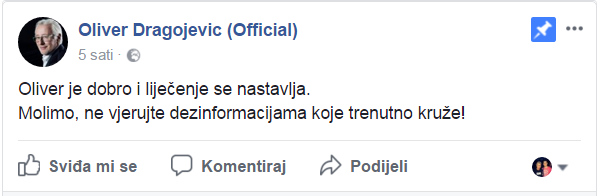 Na društvenim mrežama, ali i nekim portalima u regionu pojavila se lažna vest da je hrvatski pevač Oliver Dragojević preminuo.