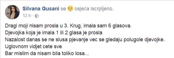 Silvana Gušani koja je pokidala u prvom krugu tako je nastavila u drugom ali nažalost ni šest glasova joj nije bilo dovoljno da prođe dalje.