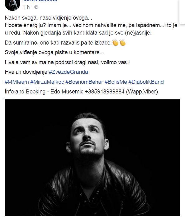 Večeras u Zvezdama Granda svoje učešće je završio Mirza Malkoč. Iako je važio za velikog favorita za njega nije bilo mjesta u narednom krugu, a ni među takmičarima koji su preko baraža prošli dalje.
