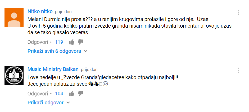 Zvezde Granda će za mjesec dana saznati novog pobjednika, ali ipak sa komentarima gledaoca na Youtube mreži i ne stoje baš najbolje.
