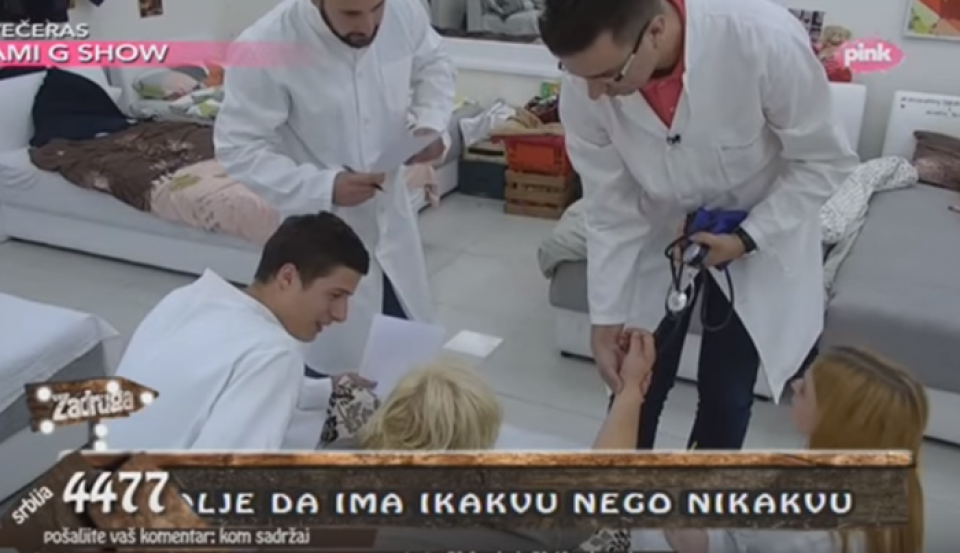 Posljednji u nizu u Zadrugu su ušli doktori, i to njih četvoro. Oni su pregledali zadrugare i mjerili im pritisak.