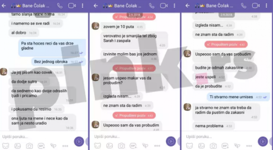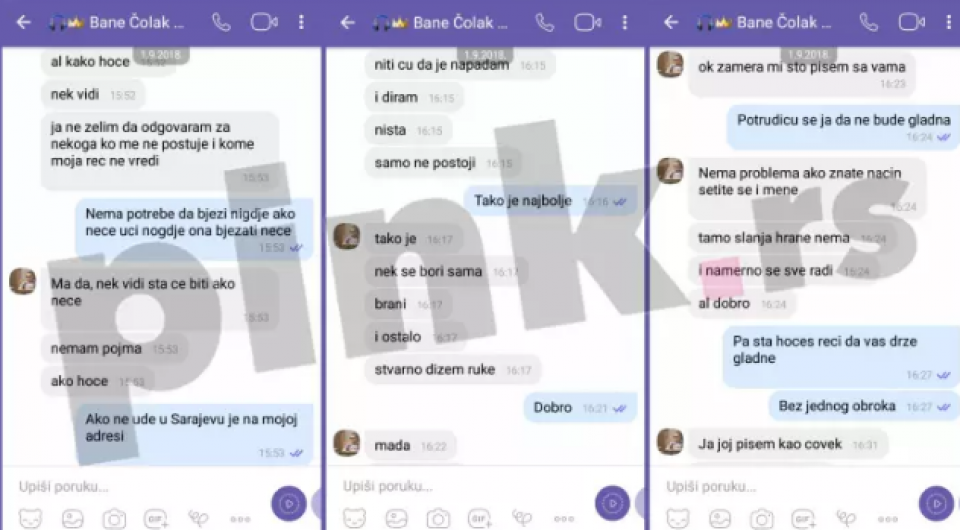 – Poslaću vam gdje treba da bude i ostalo, ako će da ulazi. Ako neće, tužiće je, kao i sve. Pa neka se ganja. Sigurno će je tužiti jer su sve tužili koji su pobjegli. Kako hoće, raspitajte se, ko je pobjegao, tužen je. Ja ne želim da odgovaram za nekoga ko me ne poštuje i kome moja riječ ne vrijedi. Neka vidi šta će biti ako neće da uđe – pisao je Bane Zerininoj majci neposredno pred njihov ulazak u ”Zadrugu”, a onda optužio produkciju da namjerno izgladnjuje učesnike.