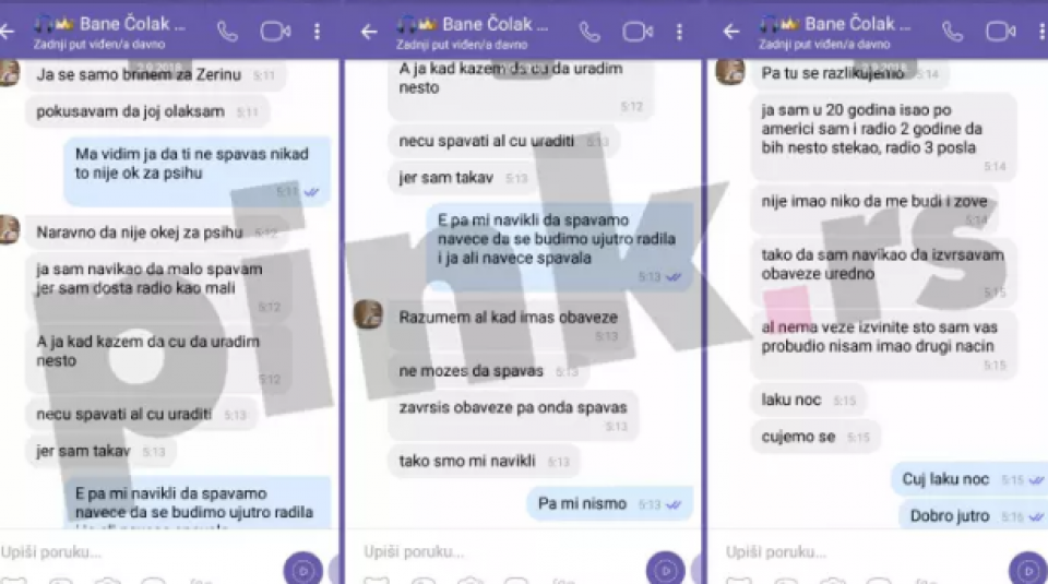 Iz poruka do kojih smo došli jasno se vidi da Zerini i Banetu nisu cvjetale ruže ni prije njihovog ulaska u ”Zadrugu”, te da Čolak nije birao sredstva da ubijedi nju i njenu majku da sa njim uđe u rijaliti. Naime, on je Zerininu majku zastrašivao tužbom.